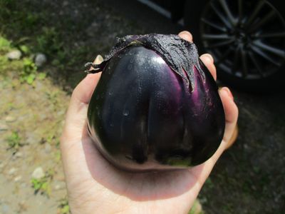 秋田を代表する鮮やかな紺色をした丸ナス。紺色が鮮やかで身も皮もしっかりしている。