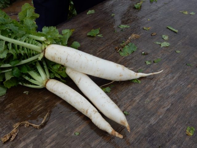 硬い肉質で歯触りのよく、保存性の高いたくあんになる。辛みダイコンとしても活用。