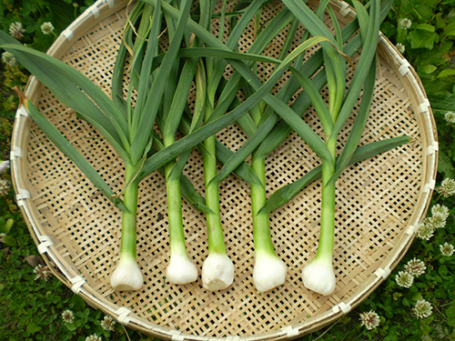 青にんにくは生のまま味噌をつけて食べられる。ロースト、すりおろして薬味に。漬け物にも。