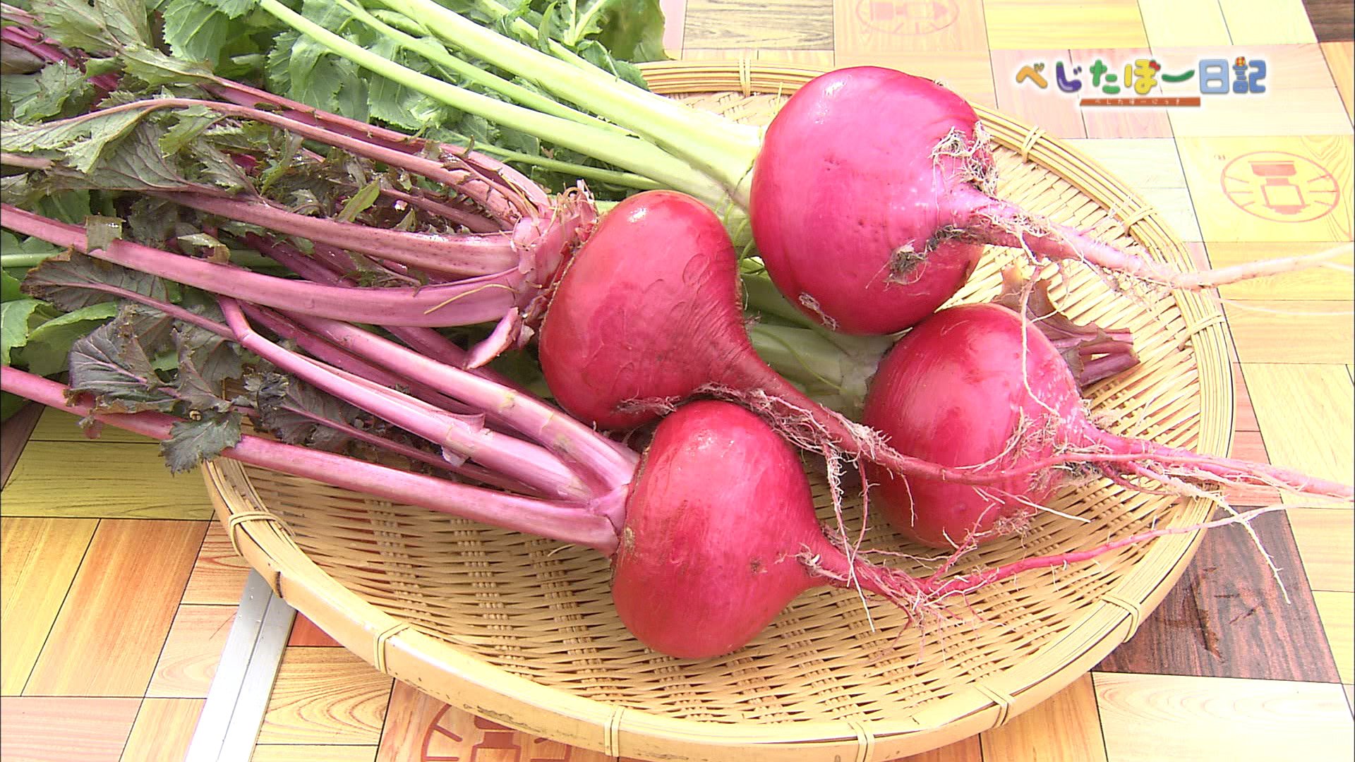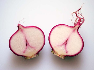 果皮は淡い紅色で果実はピンク色の洋種系の赤かぶ。