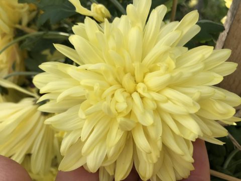 大きな花びらを野菜として食べる食用菊。花色が黄色で花肉が厚い。