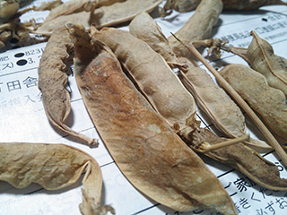自家採種で作付している豆。50年以上前からこの地区で生産されていたものと思われます。