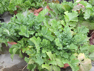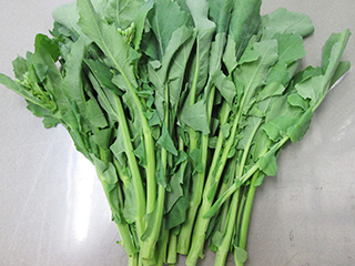大根の葉に似た形。アブラナ科の葉物野菜。やわらかく、ちょっとからいのが特徴。
