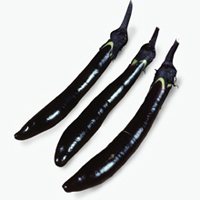 果実の先が尖っているなす。長さが20cmぐらいになり濃紫色で黒色に近い。